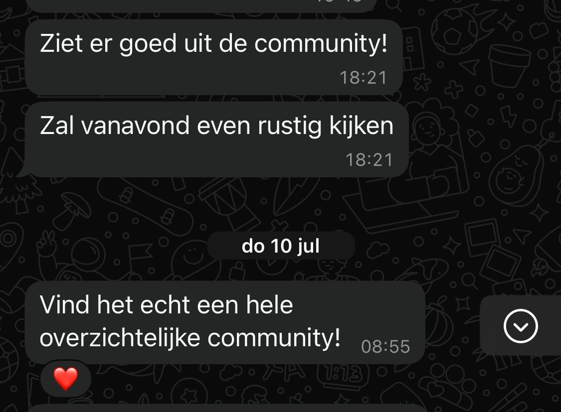 De community is ontzettend gezellig en behulpzaam. Het delen van ideeën en tips motiveert me om steeds nieuwe dingen te proberen en door te zetten.
